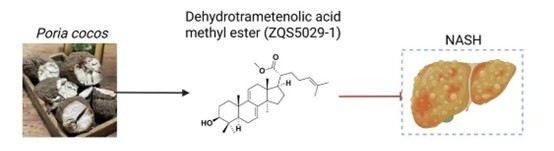 2025年中国科学院昆明植物研究所植物化学与西部植物资源持续利用国家重点实验室和中国科学院上海药物研究所药物研究国家重点实验室在Acta Pharmacologica Sinica期刊上发表了题为“Dehydrotrametenolic acid methyl ester, a triterpenoid of Poria cocos, alleviates non-alcoholic steatohepatitis by suppressing NLRP3 inflammasome activation via targeting Caspase-1 in mice”的文章,该研究不仅确定茯苓中的羊毛甾醇-7,9(11)-二烯三萜类化合物松苓新酸甲酯作为非酒精性脂肪肝炎(NASH)治疗的新型先导化合物,而且强调了靶向Caspase-1阻断NLRP3炎性体激活有助于改善NASH。这些发现不仅支持了中药在代谢疾病治疗中的应用,也为未来相关领域的探索奠定了基础。阐明中药化合物松苓新酸甲酯的独特活性及其作用机制,对今后开发基于中药的NAFLD治疗药物具有重要的指导意义[3]。